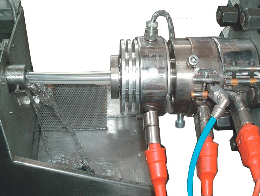 - Станция контроля качества (лазерные датчики измеряют диаметр и толщину стенки в реальном времени).