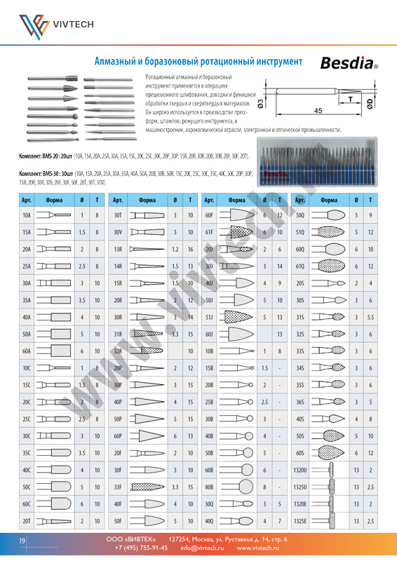 Свяжитесь со специалистами ВИВТЕХ — мы подберём алмазные или CBN-инструменты нужной формы, диаметра, зернистости и профиля.