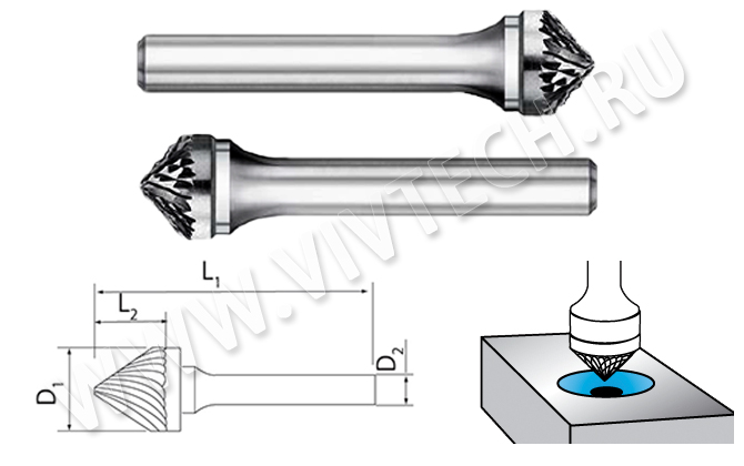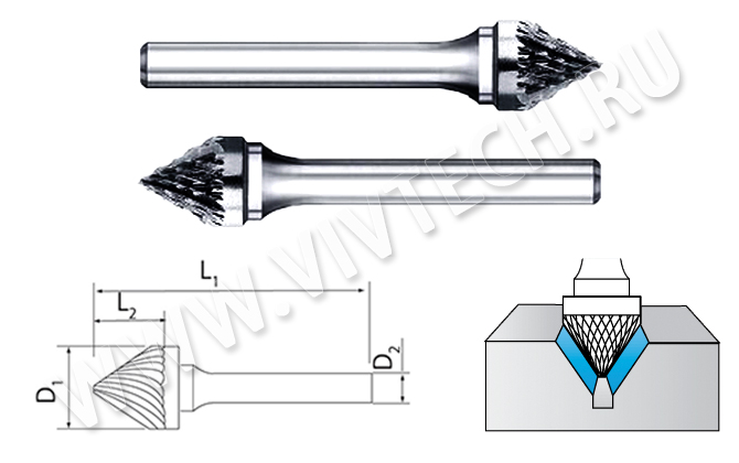 Наши фрезы имеют высокую точность, не имеют биения. Они специально разработаны для ручной гравировки и для снятия металла при помощи бормашин, например, производства компании Argofile. Режущие части изготавливаются из твёрдого сплава К10.