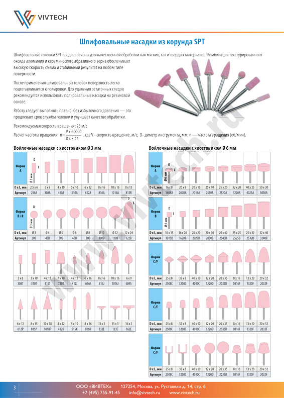 Расчёт частоты вращения: n= V*6000/D*3,14 , где V - скорость вращение, м/с; D- диметр инструмента, мм; n — частота вращения (об/мин).
