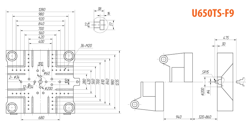 Размеры плит термопластавтомата SONLY U650TS-F9