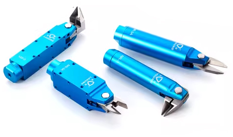 Пневмокусачки — это специализированный инструмент с пневматическим приводом, разработанный для высокоскоростной и точной обрезки литниковой системы, удаления технологических облоев и заусенцев на пластиковых изделиях после процесса литья под давлением. Их конструкция идеально подходит как для интеграции в роботизированные ячейки, манипуляторы и автоматические комплексы, так и для ручного применения оператором. Также используются для резки проволоки.